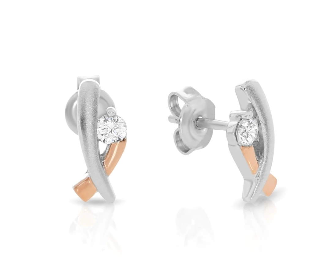 Ein Paar wunderschöne bicolor Ohrstecker komplett aus 925 Sterling Silber mit funkelnden Zirkonia. Wenn Sie besondere moderne Ohrstecker suchen, ist dieser hochwertige Echtschmuck von GALWANI eine sehr gute Wahl.