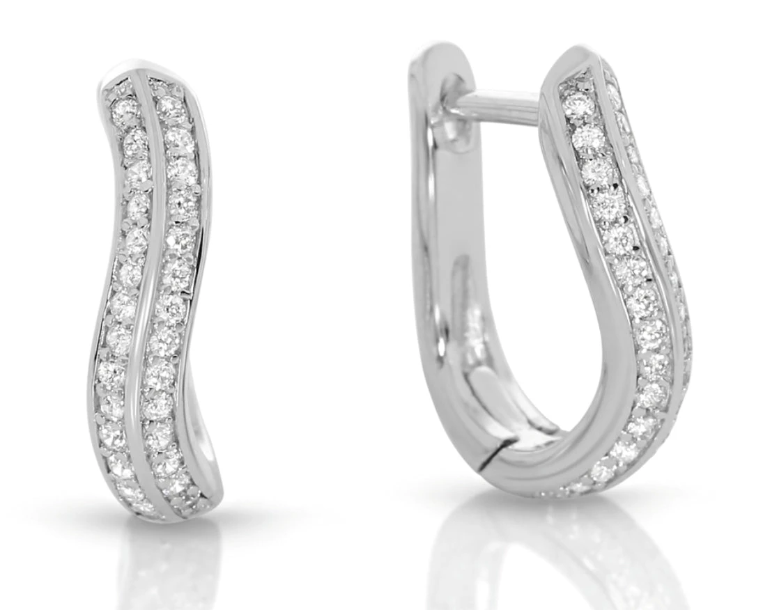 Ein Paar wunderschöne geschwungene Creolen komplett aus 925 Sterling Silber mit glänzenden Zirkoniasteinen. Die Ohrringe sind zur Hälfte mit herrlich funkelnden Zirkonia Steinen eingefasst. Durch den dezenten Look lässt sich dieser wundervolle Ohrschmuck vielseitig kombinieren. Durch die elegante, runde Formgebung sind diese Ohrringe auch zu besonderen Feiertage, Jubiläen oder wichtigen beruflichen Ereignissen ein idealer Begleiter.