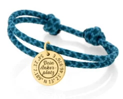 Armband Seil 3mm Schwarz Weiß Khaki Anker Anhänger Vergoldet Gravur